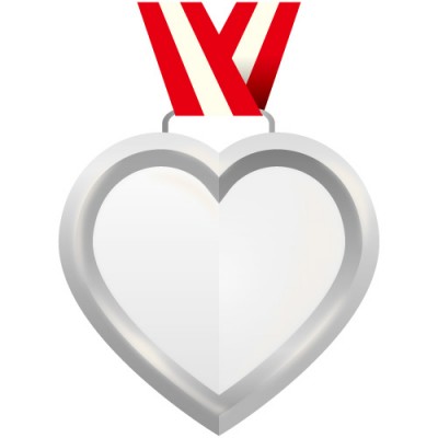シルバーカラーのハート型メダル風イラスト 無料 商用可能 メダル バッジ コイン シールイラレ素材ダウンロードサイト